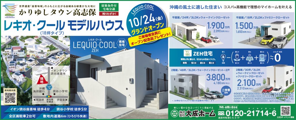 10/24(金)【かりゆしタウン高志保】にて”レキオ・クール18坪”モデルハウスが待望のグランドオープンを迎えます🎉