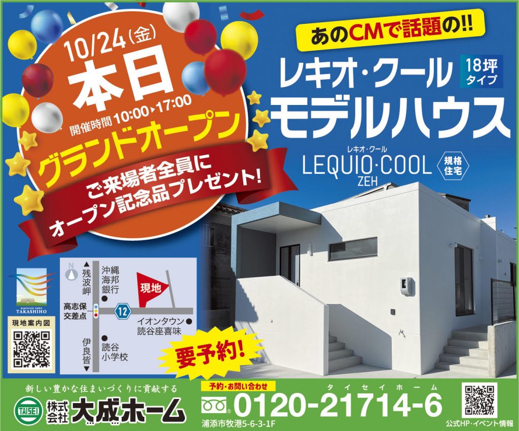 今週末の10/24(金)、読谷村の宅地分譲地【かりゆしタウン高志保】にて、待望のグランドオープンを迎えます🎉